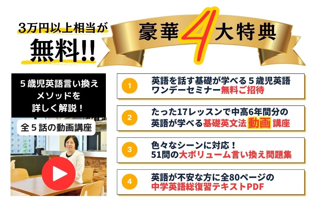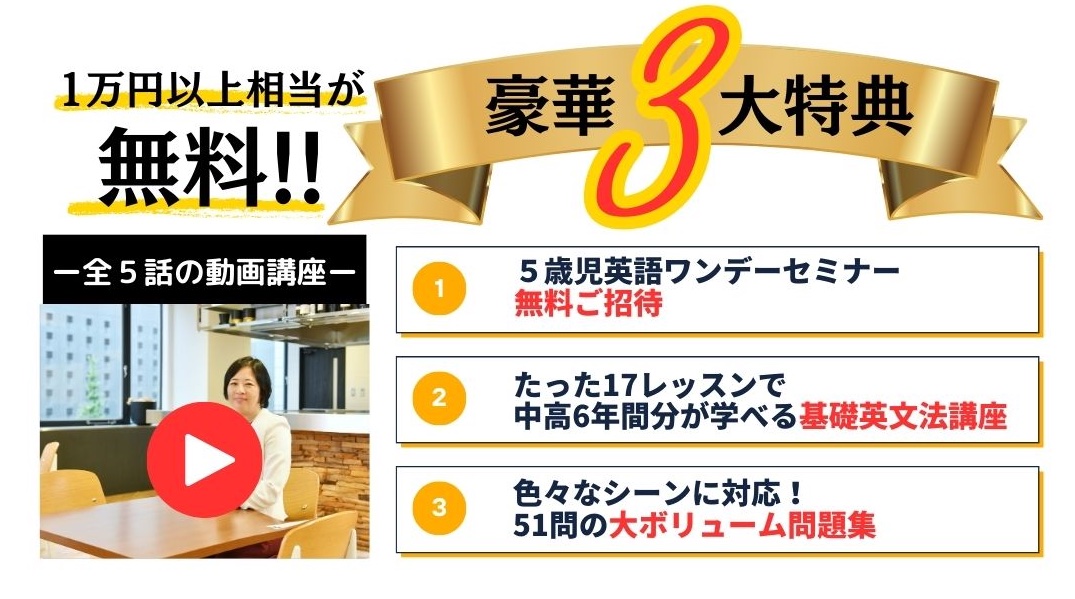 A1 ご安心ください。中1レベルから復習できる英文法動画講座を無料でお付けしております。これから英語を始めたいという方でも安心して学習を始めることができます。